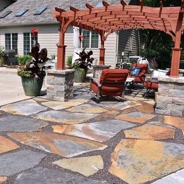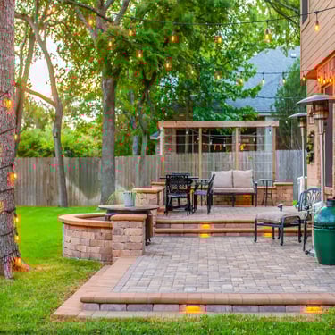 A collection of expertly built patios, walkways, retaining walls, driveways, and outdoor living spaces crafted with precision and strong materials.